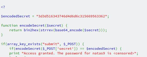 Oh, will you look at that. Another secret code we need to find. Let's start by exploring the link to the source code. And just like level 6, there's some PHP code with an encoded secret, along with the steps required to reverse engineer it.