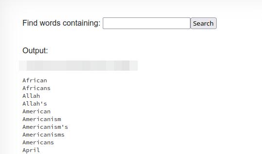 After entering that command into the text box, we're presented with the password for level 10 and all the lines in the dictionary!