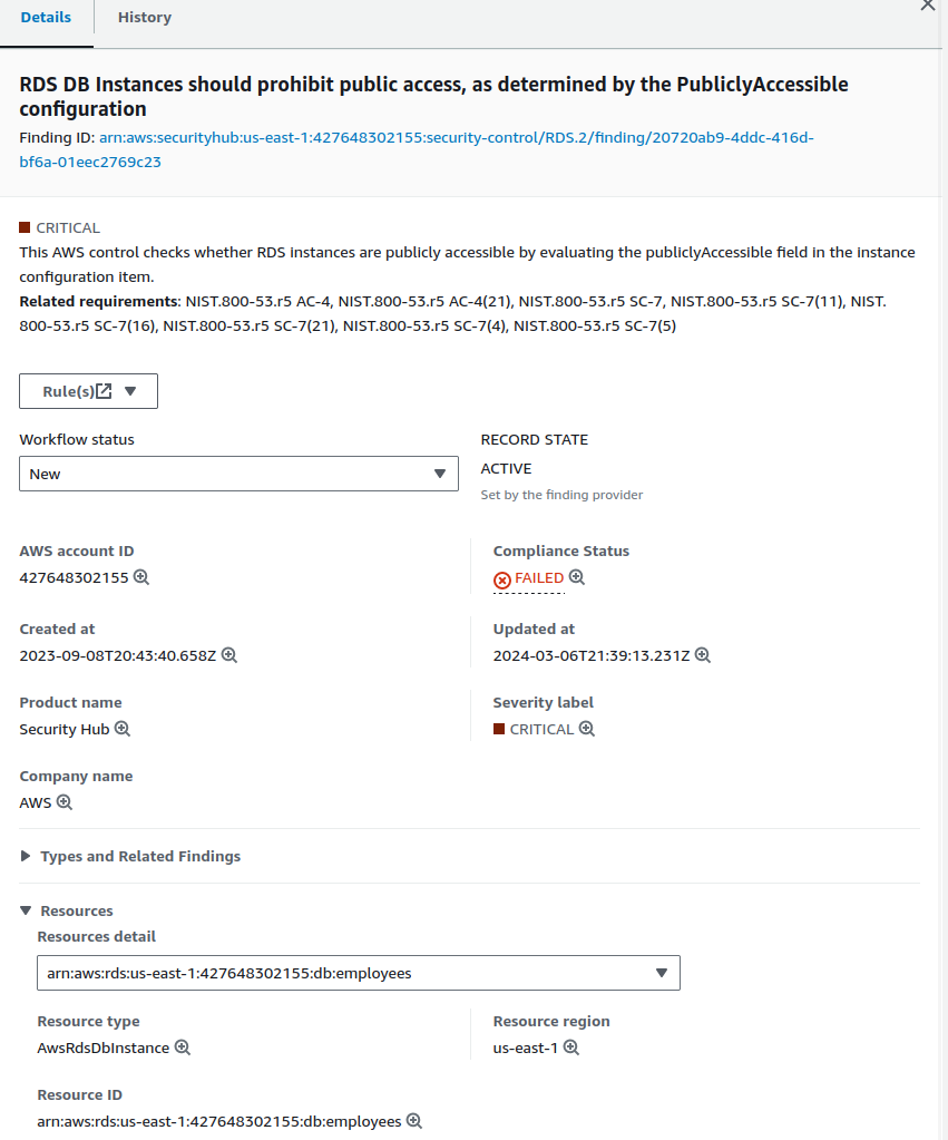 This is an interesting finding in that an RDS database is accessible via the public internet, which in reality should never happen. This is a service that attracts a lot of attention in the form of brute force attacks. These attacks could put a strain on the resources available to the database and/or fill up the disc with failed access attempts.